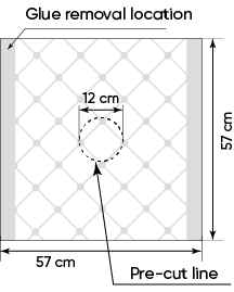 Before you purchase Compatible air conditioner models: The ceiling air conditioner that a size of an air outlet is about 57 x 57cm Compatible Hybrid fan models: Hybrid fan with plate diameter within 11cm *** Note: By cutting the perforation in the center of this product, it is possible to combine it with a Hybrid fan. |