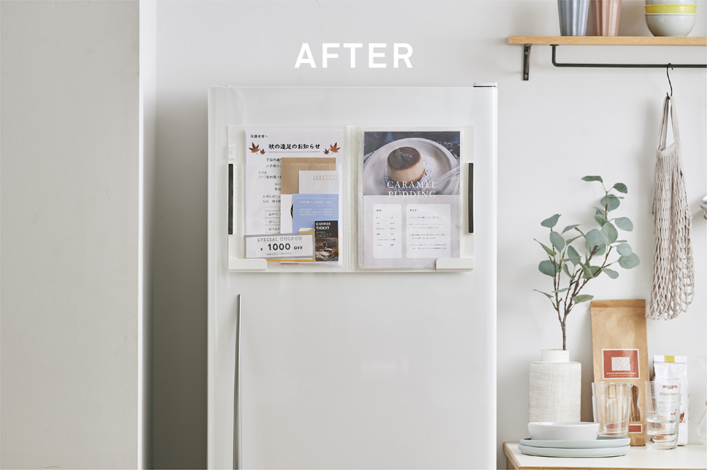 It can be attached to a refrigerator or front door with a suction cup to organize and store various documents.