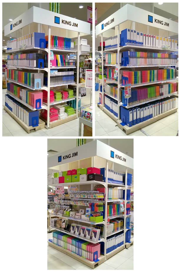 Customers can find out King Jim products at Aeon Mall’s stationery area from file folders such as King File, Lever Arch File, Clear File, Carrying Case, Pen Case to electronic goods with high quality. Cause its convenience and diversify, our booths attract millions of customer’s attention each year.