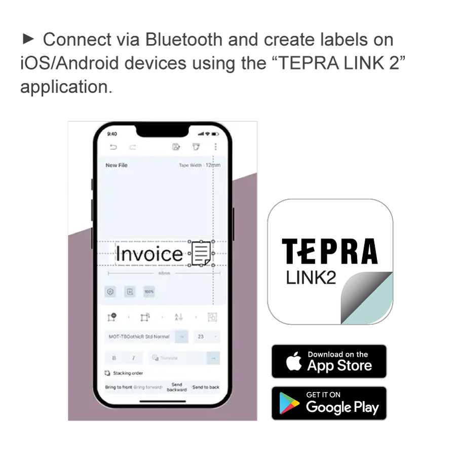 ● Supports TEPRA Label Editor SPC10 software (Windows) and TEPRA LINK 2 (iOS/Android).