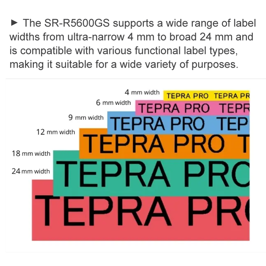 | Compatible tape width | 4 / 6 / 9 / 12 / 18 / 24 mm |