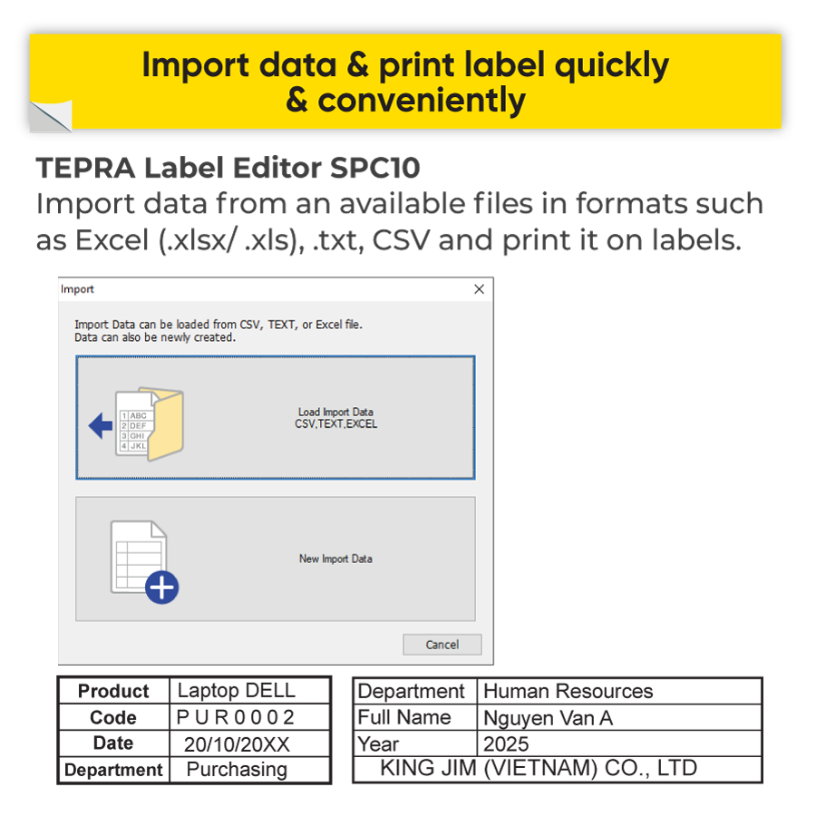 >> OUTSTANDING FEATURES OF “TEPRA LABEL EDITOR SPC10” << Windows labeling software that enables easy, convenient, and more advanced label editing.