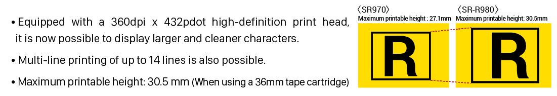 | Maximum printable height | 30.5 mm (when using 36 mm width tape) |
