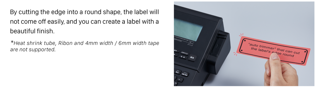 | Equipped with an "auto trimmer" that can cut the label's edge round | |